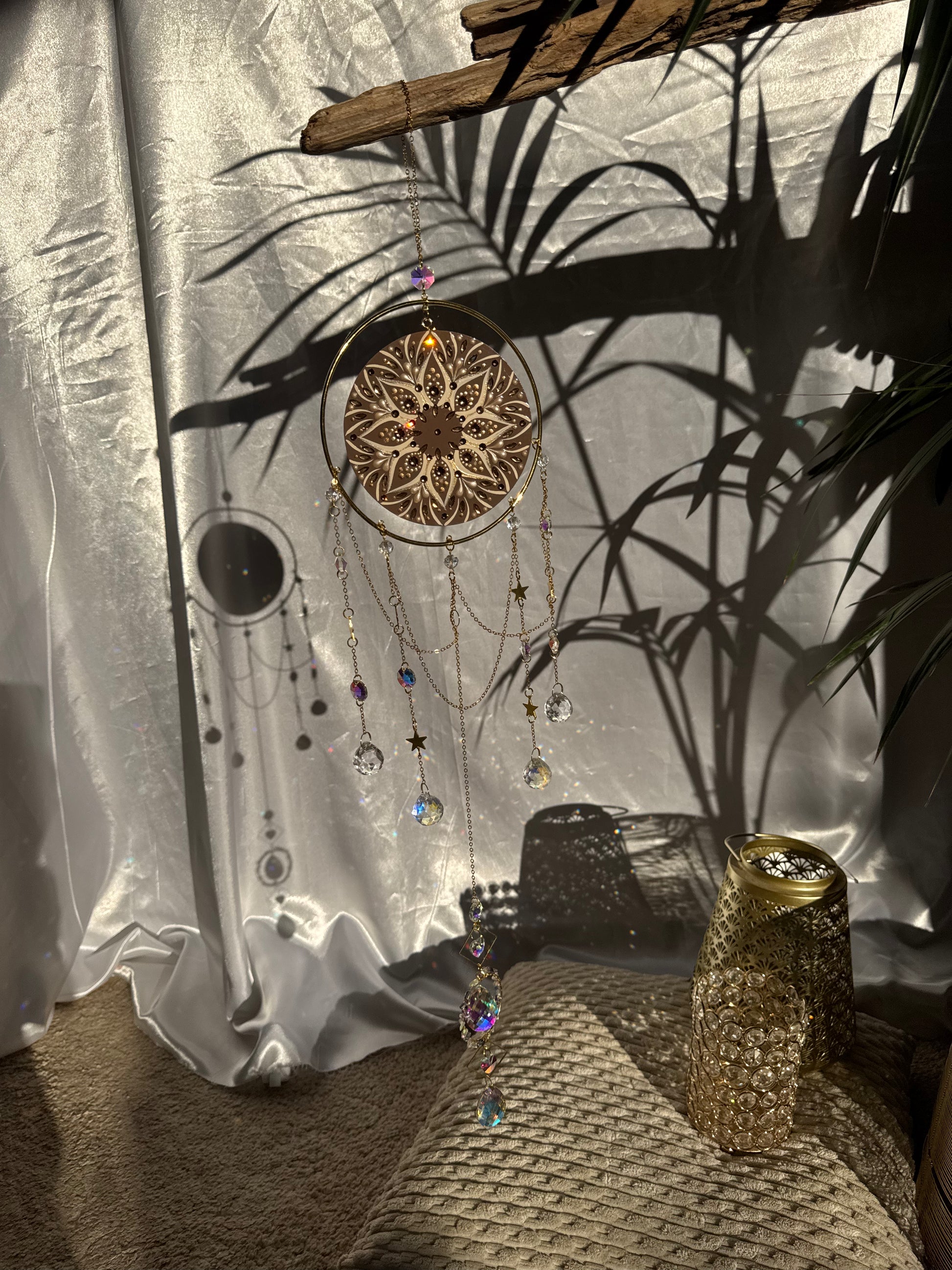 Nel Sun Catcher, questo cerchio agisce come un portale di integrazione, in cui l’ombra si trasforma in conoscenza e la luce diventa presenza.