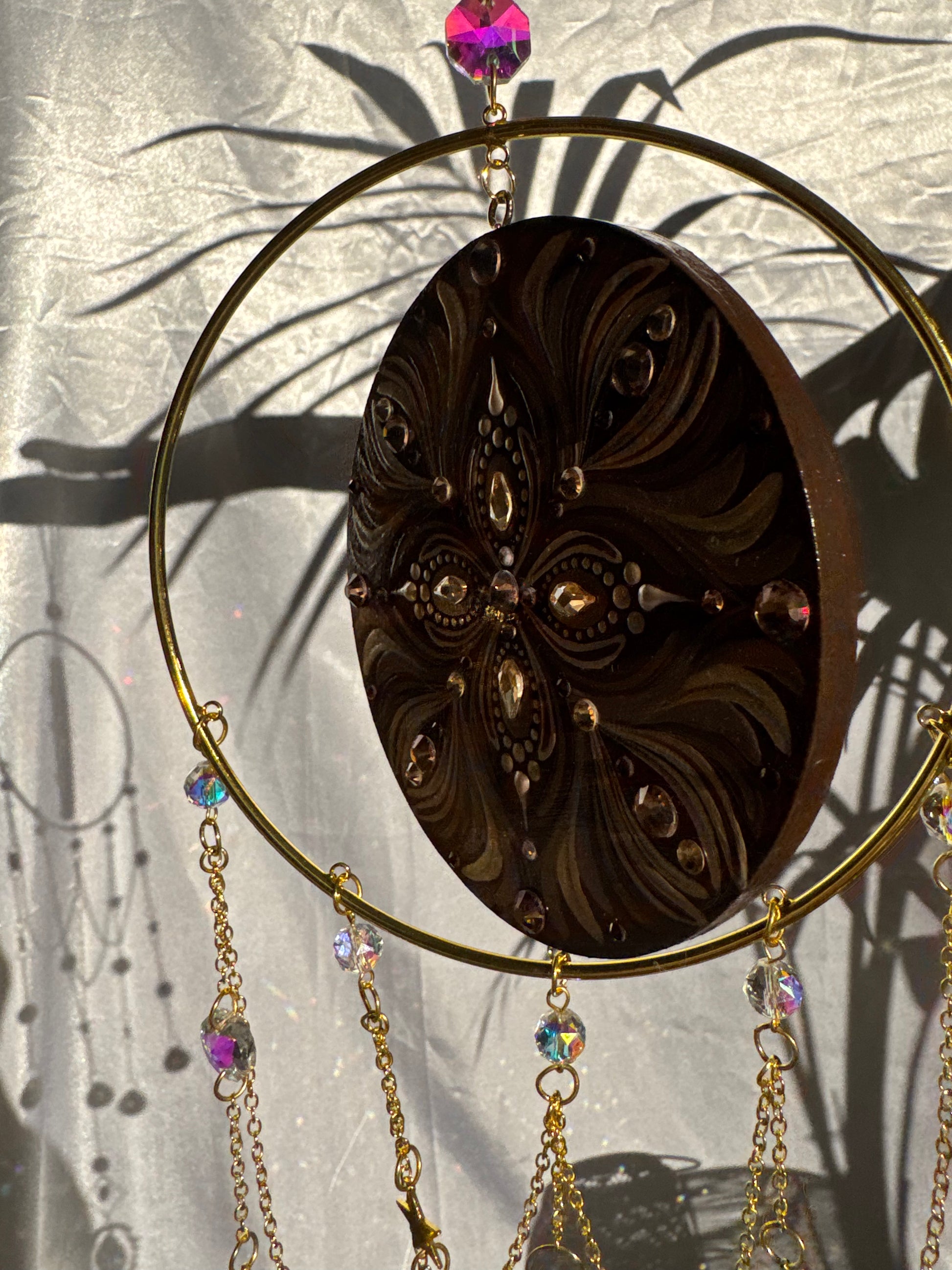 Nel Sun Catcher, questo cerchio agisce come un portale di integrazione, in cui l’ombra si trasforma in conoscenza e la luce diventa presenza.