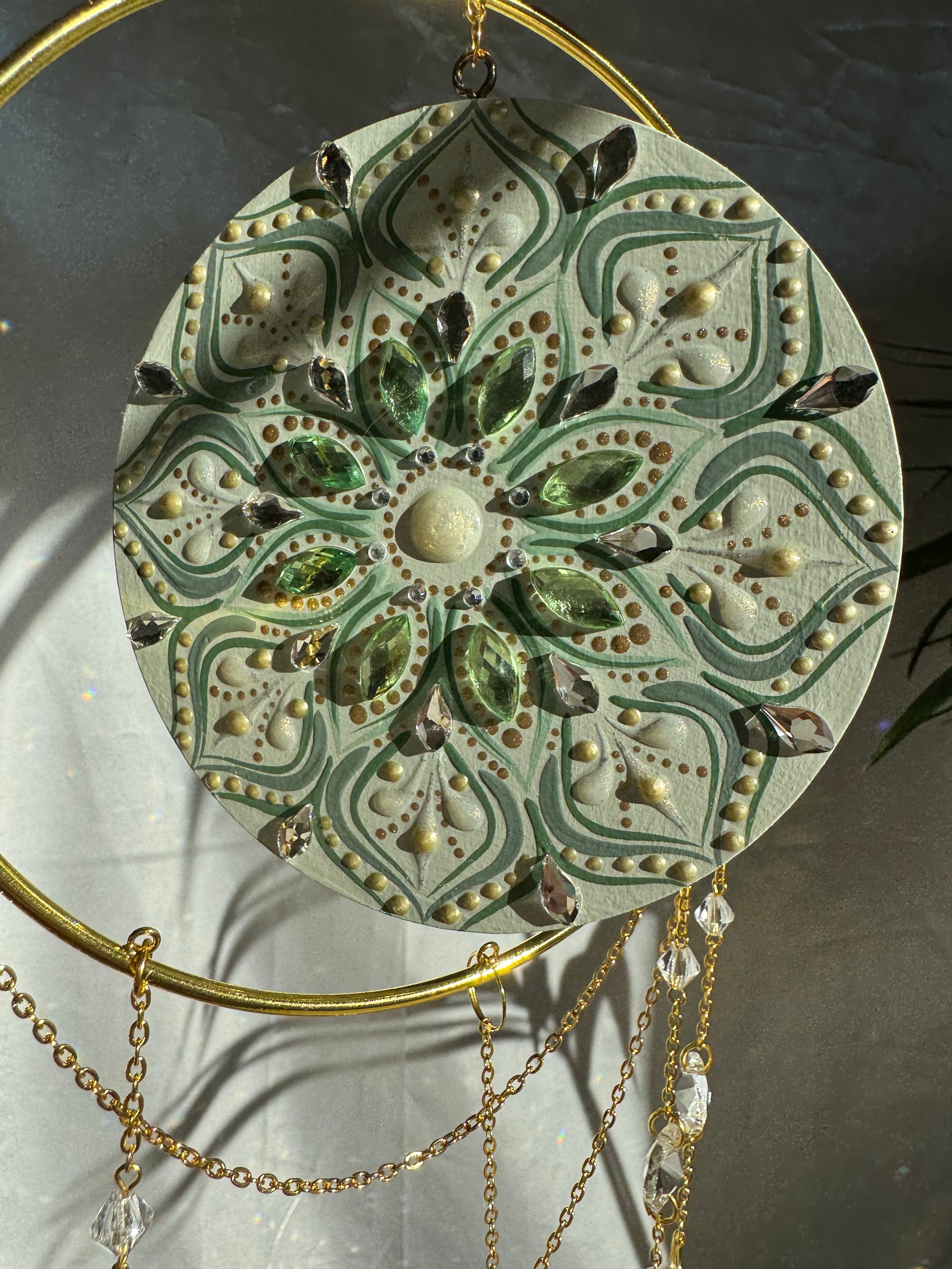 Nel Sun Catcher, agisce come un portale di armonia verde: trasmette stabilità, amore compassionevole e rinnovamento costante.