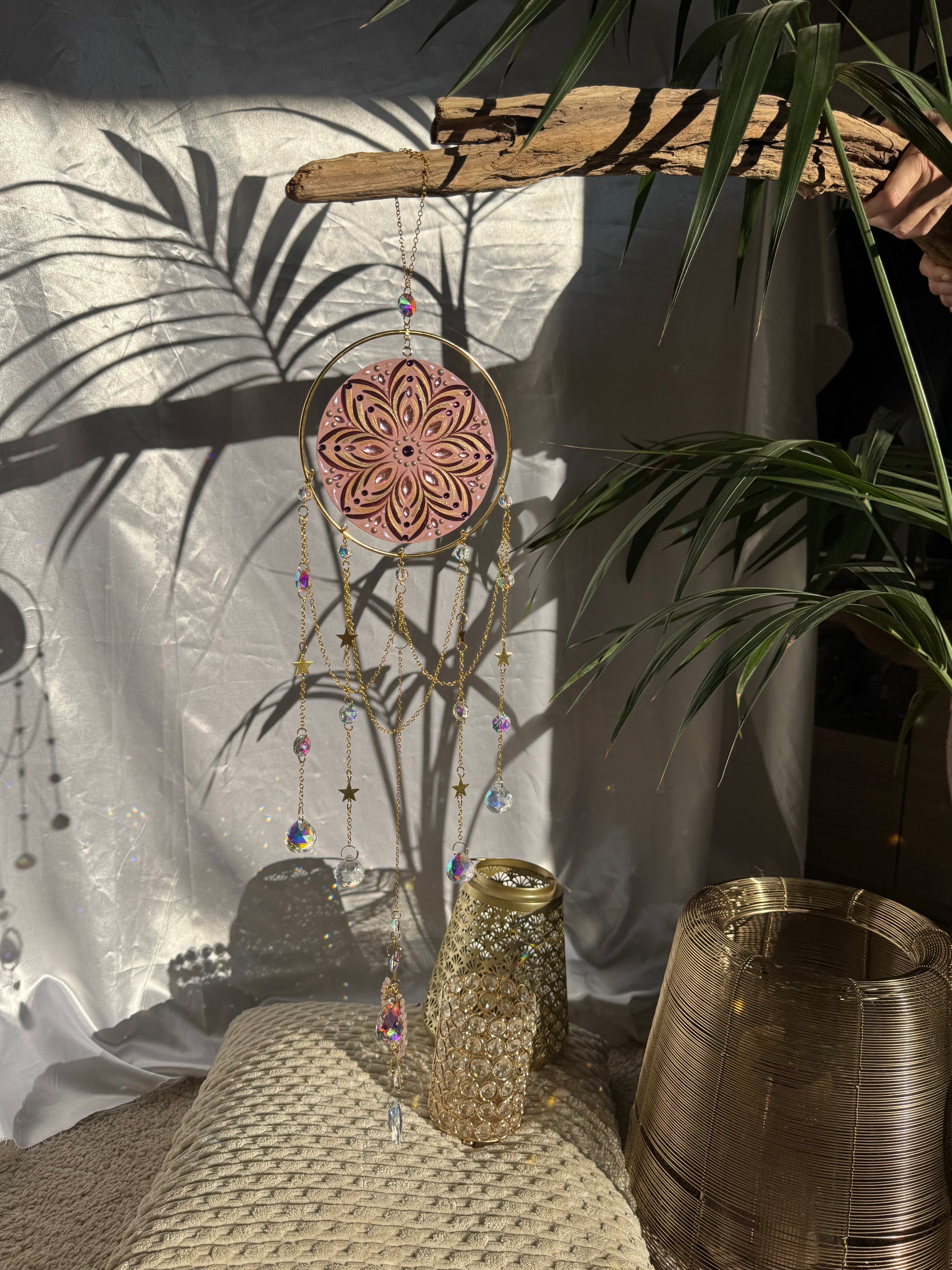 Nel Sun Catcher, il quarzo rosa amplifica la frequenza dell’amore puro, trasformando la luce in vibrazione di pace e accoglienza.